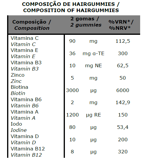 Os nutrientes de Hairgummies foram cuidadosamente selecionados tendo em conta os seguintes efeitos benéficos: